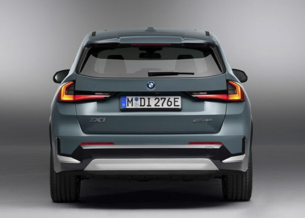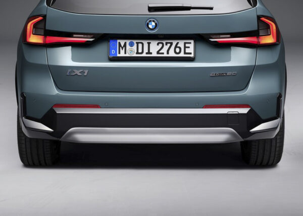 Az autó hátsó része is igen szembetűnő az iX1 egyedi LED hátsó lámpákat kapott amely éjszakai látványban sem utolsó. Az autó összességében tiszta, letisztult megjelenést ad, amely a BMW stílusára jellemző.